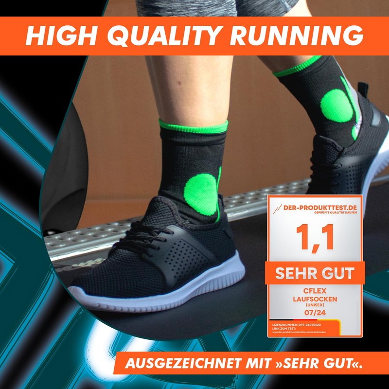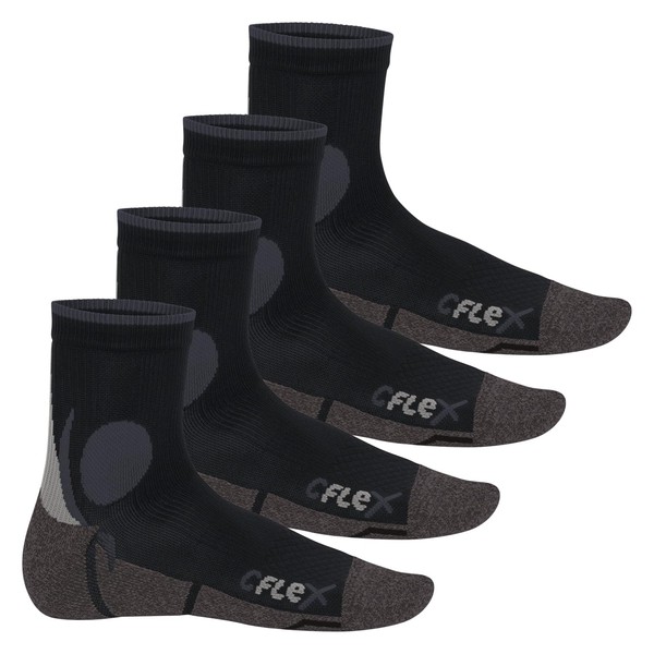 CFLEX Women's and Men's Running Functional Socks (4 Pairs) Running Socks, black/grey, 35 - 38