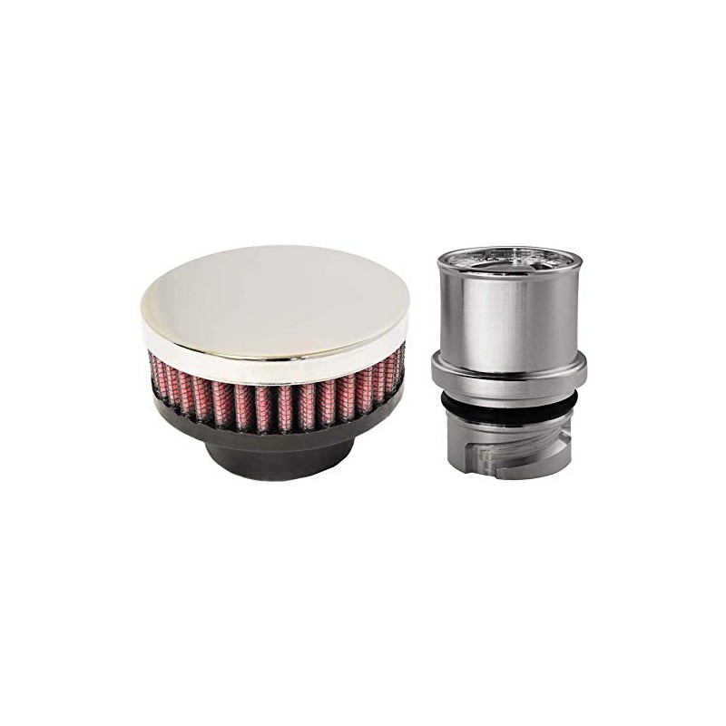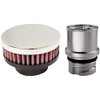 The proprietary internal baffle keeps oil particles away from the breather element. The filter element is washable and has a variety of top finishes for great looks. Although this kit was designed for use in racing applications, it works and looks great in any engine compartment.