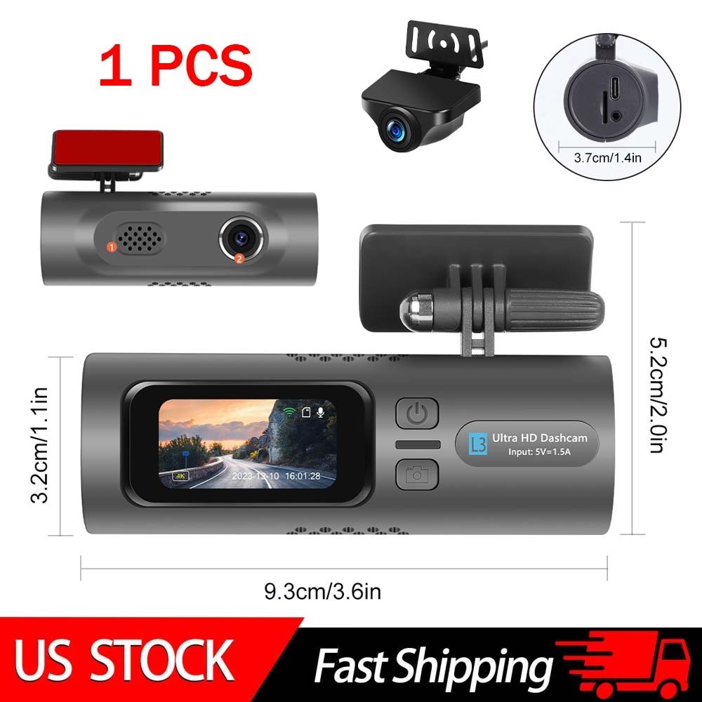CFRIATO Car Dual Lens Dash Cam HD 4K Front/Rear Video Recorder Camera night vision WIFI