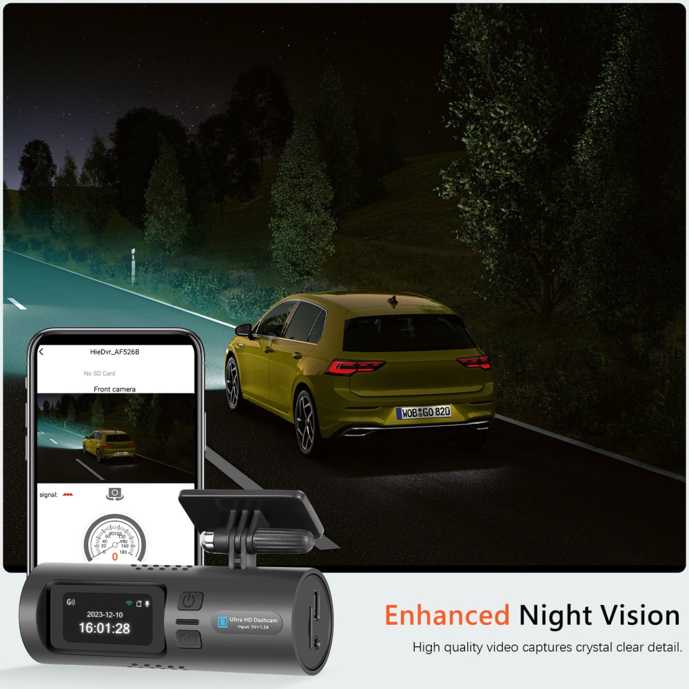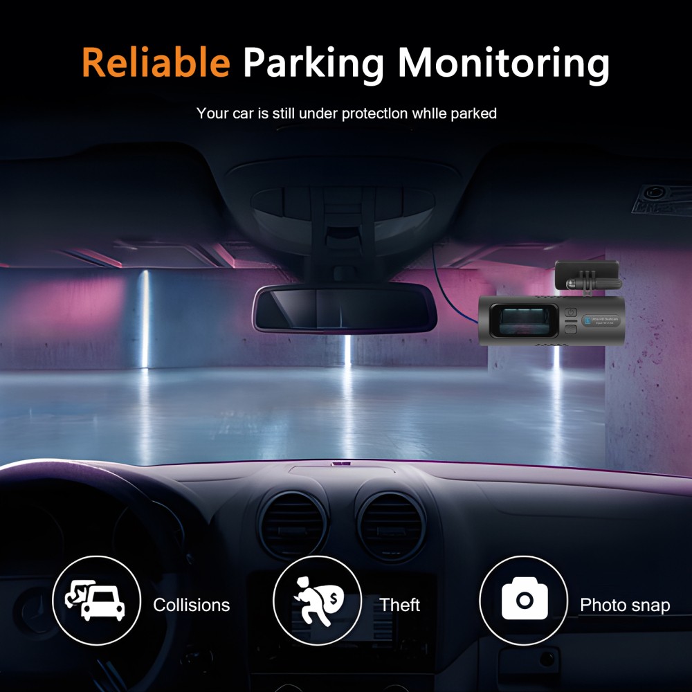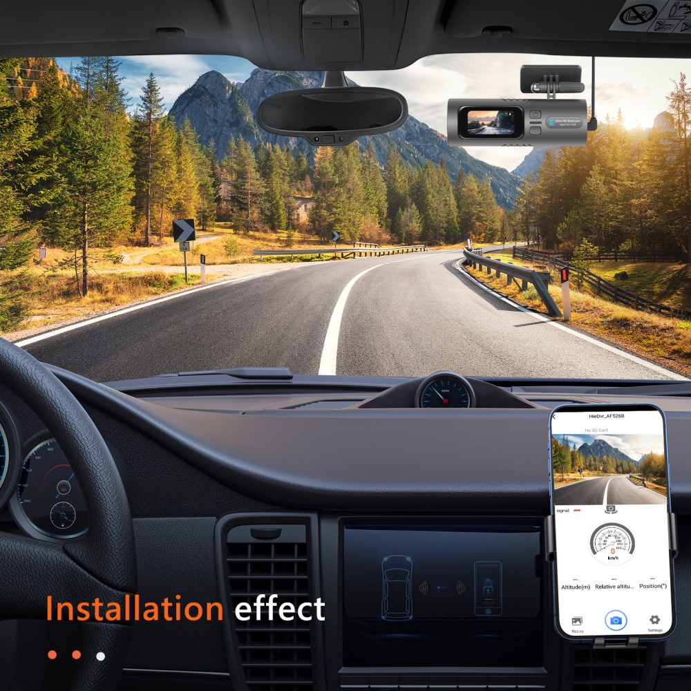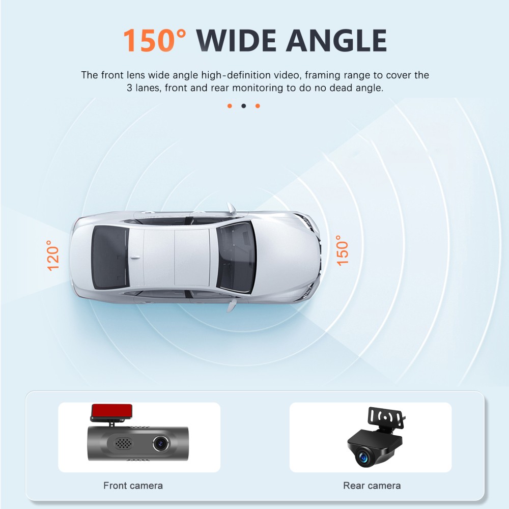 1.HD 4k Resolution,equipped with a wide-angle camera of 150°, captures the whole driving in crystal-clear definition.