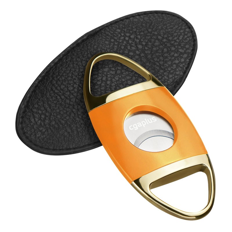 Cgaplus Cigar Cutter Stainless Steel Double Blade Guillotine with Leather Case Cigar Cutter for Precise, Perfect Cut (Yellow)