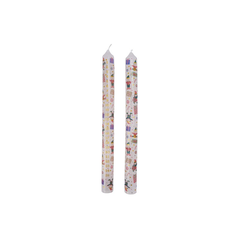 - 🎁 Set of 2 | Receive a set of 2 Christmas Advent Candles. Each candle enjoys an all over Santa’s Workshop design, find elves and presents all over the candles!