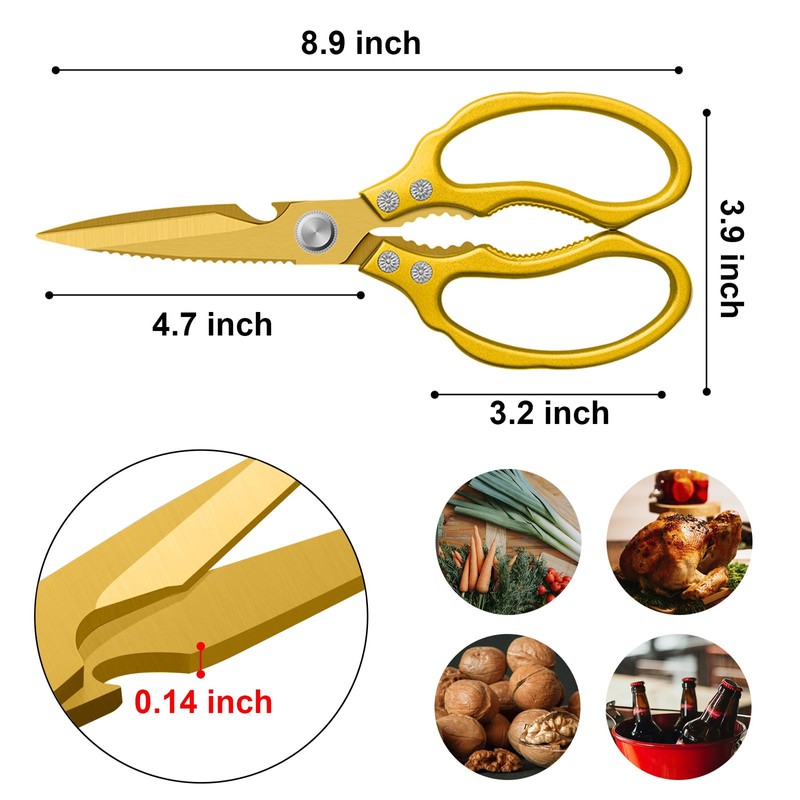 CGBE Kitchen Scissors, Multi-Purpose Kitchen Shears, Heavy Duty Dishwasher Safe Food Scissors, Non Slip Stainless Steel Sharp Cooking Scissors (All Gold)