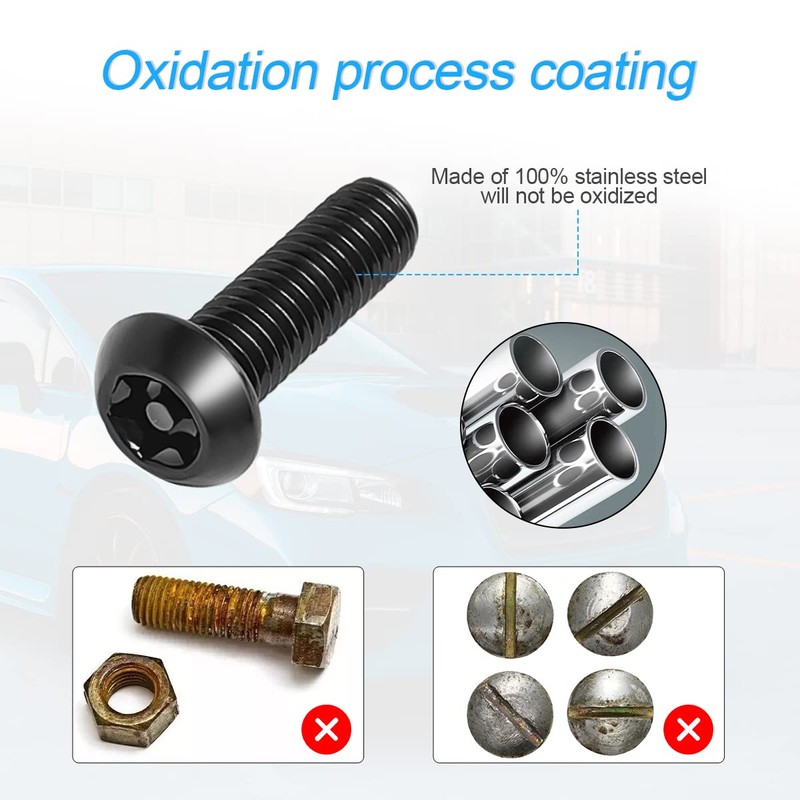 - 【Anti-theft】: These security screws use a unique tamper proof design - the top of the flat head screw is equipped with a hexagonal button head with a thimble in the middle. This cannot be attached or removed with an Allen key. You need to use the anti-theft screwdriver supplied by us to make your license plate anti-theft.