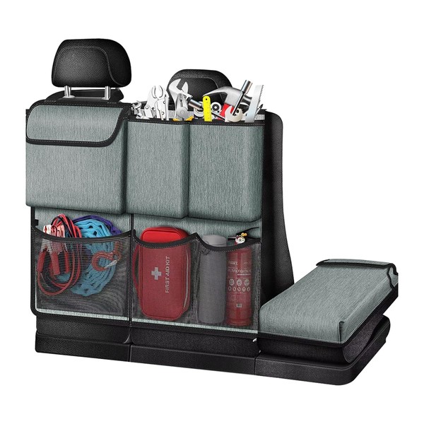 CGEAMDY Multifunktionale Auto Organizer Rücksitz, Kofferraum Organizer Auto, Oxford Tuch auto Kofferraum Hängende Aufbewahrungstasche, Automobil-Universalinterieur Dekoratives Zubehör(Grau)