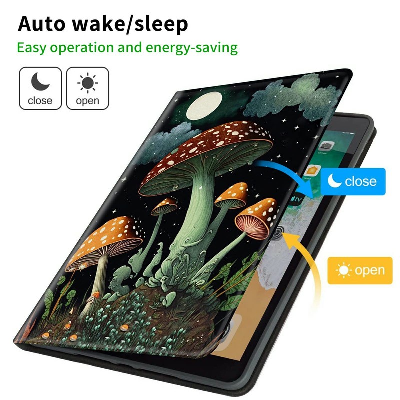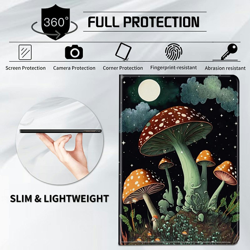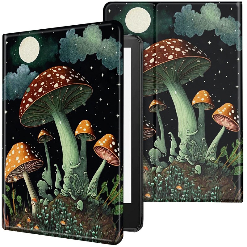 CGFGHHUY Case for 6.8 inch Kindle Paperwhite 11th Generation 2021/Kindle Paperwhite Signature Edition Lightweight Protective PU Leather Smart Stand Cover with Auto Wake Sleep - Mushrooms and Moon