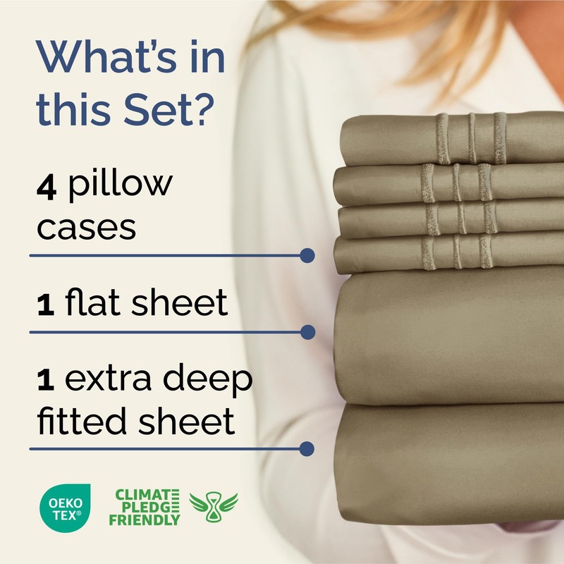 CGK Unlimited Extra Deep King Sheet Set - 6 Piece Breathable & Cooling Sheets - Hotel Luxury Bedding Set w/18-24 Inch Extra Deep Pockets - Easy & Secure Fit - Super Soft, Wrinkle Free and Comfy - Khaki, King Size