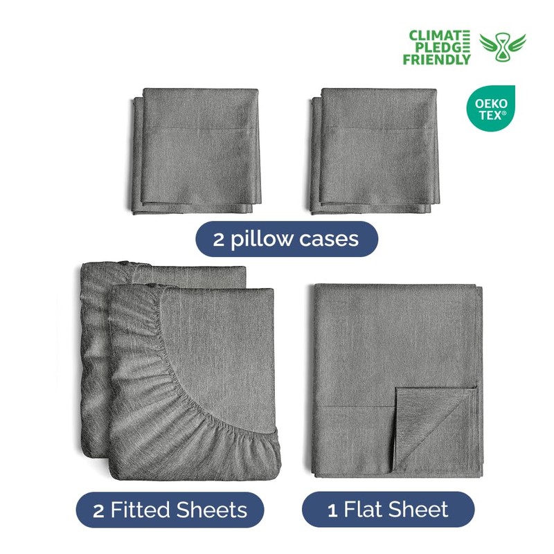 CGK Unlimited Extra Deep Split King Sheet Set - 7 Piece Breathable & Cooling Sheets - Hotel Luxury Bedding Set 18-24 Inch Extra Deep Pockets - Easy Fit, Soft, Wrinkle Free & Comfy - Heathered Grey, Split King Size