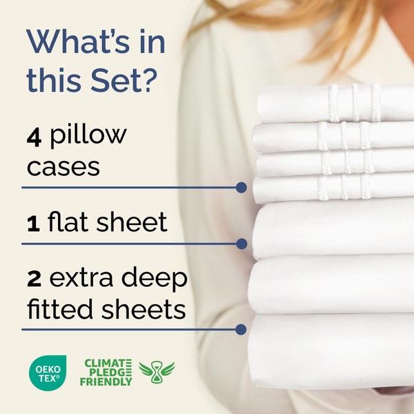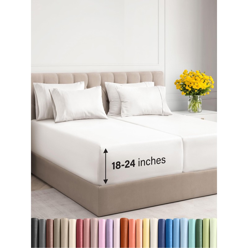 CGK Unlimited Extra Deep Split King Sheet Set - 7 Piece Breathable & Cooling Sheets - Hotel Luxury Bedding Set w/18-24 Inch Extra Deep Pockets - Easy Fit, Soft, Wrinkle Free & Comfy - Antique White, Split King Size