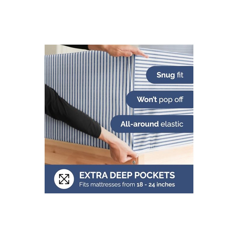 - EXTRA DEEP POCKET TWIN SHEETS / EXTRA DEEP FITTED TWIN SHEETS: These bed sheets are for very deep pocket mattresses. They fit any mattress with pockets that are 18, 20, 21, 22 and 24 inches deep. There's stretchable elastic around the extra deep fitted sheet which stretches for a nice tug around your mattress. Perfect for extra tall & large mattresses. Rest assured these oversized sheets will stay on tight & stay in place!