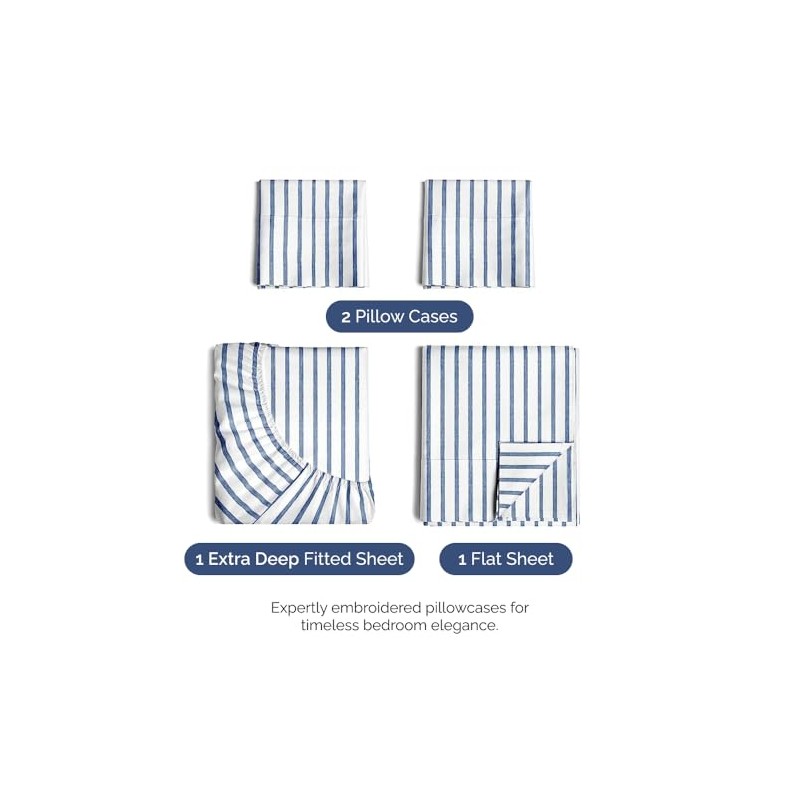CGK Unlimited Extra Deep Twin Sheet Set - 4 Piece Breathable & Cooling Sheets - Hotel Luxury Bedding Set w/18-24 Inch Extra Deep Pockets - Easy & Secure Fit - Soft, Wrinkle Free and Comfy - Blue Stripes, Twin Size