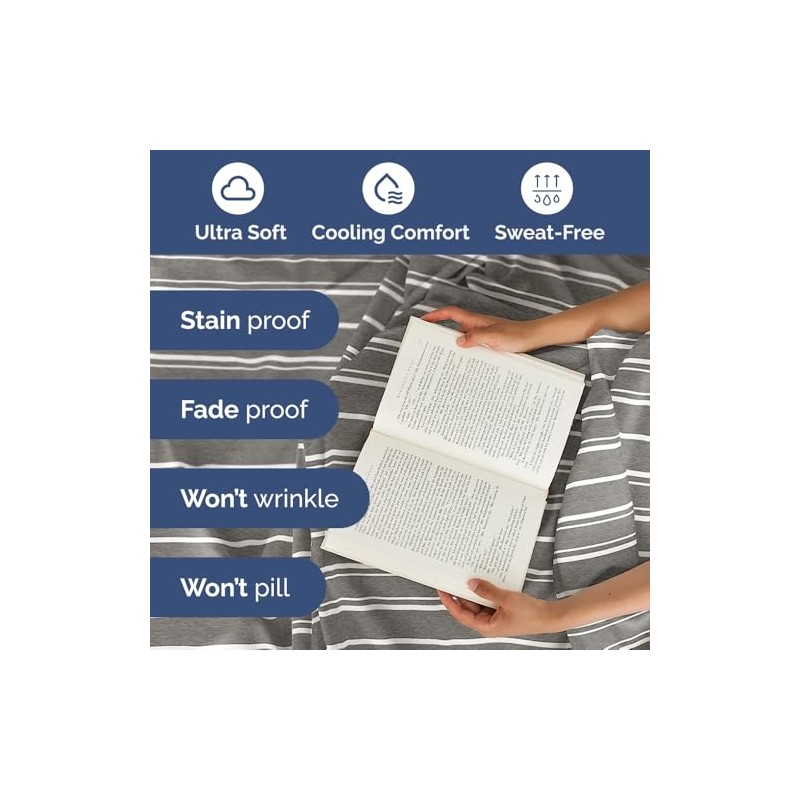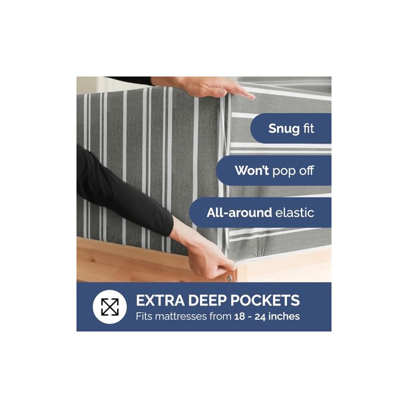 CGK Unlimited Extra Deep Twin Sheet Set - 4 Piece Breathable & Cooling Sheets - Hotel Luxury Bedding Set w/18-24 Inch Extra Deep Pockets - Easy & Secure Fit - Soft, Wrinkle Free and Comfy - Grey Stripes, Twin Size