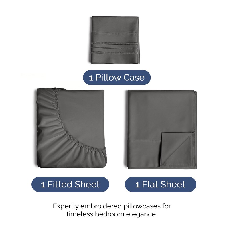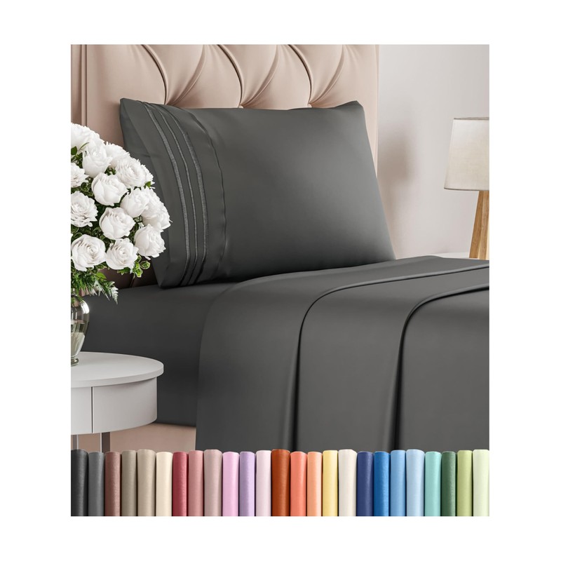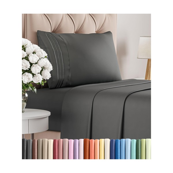 CGK Unlimited Twin Size 3 Piece Sheet Set - Comfy Breathable & Cooling Bed Sheets Set - Hotel Luxury Bedding for Women, Men, Kids & Teens - Deep Pockets, Easy-Fit, Super Soft & Wrinkle Free - Oeko-Tex - Charcoal