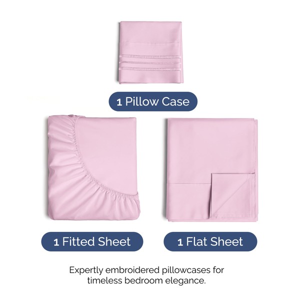 CGK Unlimited Twin Size 3 Piece Sheet Set - Comfy Breathable & Cooling Bed Sheets Set - Hotel Luxury Bedding for Women, Men, Kids & Teens - Deep Pockets, Easy-Fit, Super Soft & Wrinkle Free - Oeko-Tex - Light Pink