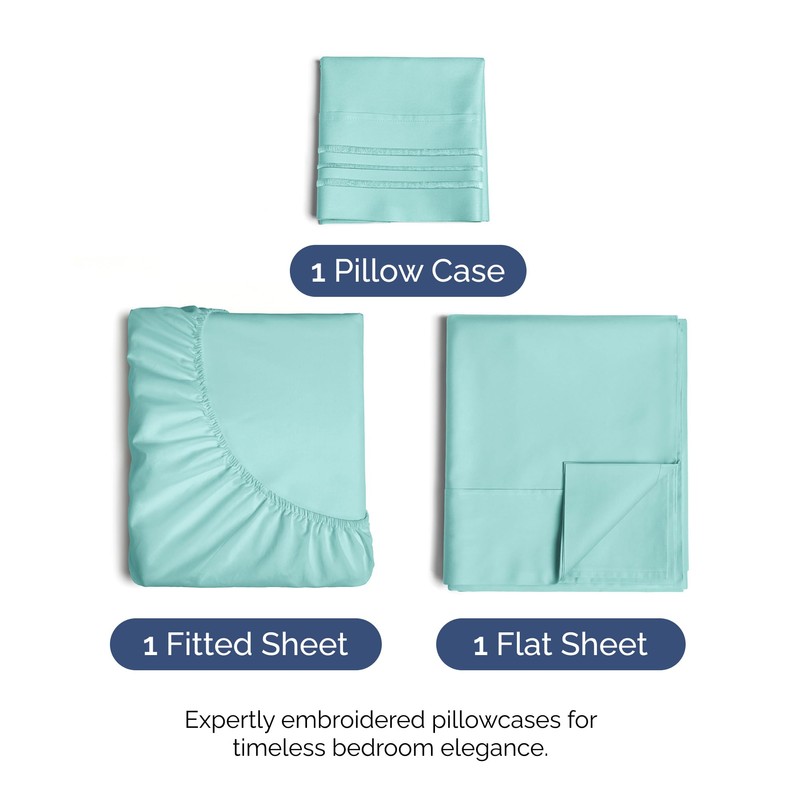 CGK Unlimited Twin Size 3 Piece Sheet Set - Comfy Breathable & Cooling Bed Sheets Set - Hotel Luxury Bedding for Women, Men, Kids & Teens - Deep Pockets, Easy-Fit, Super Soft & Wrinkle Free - Oeko-Tex - Spa Blue