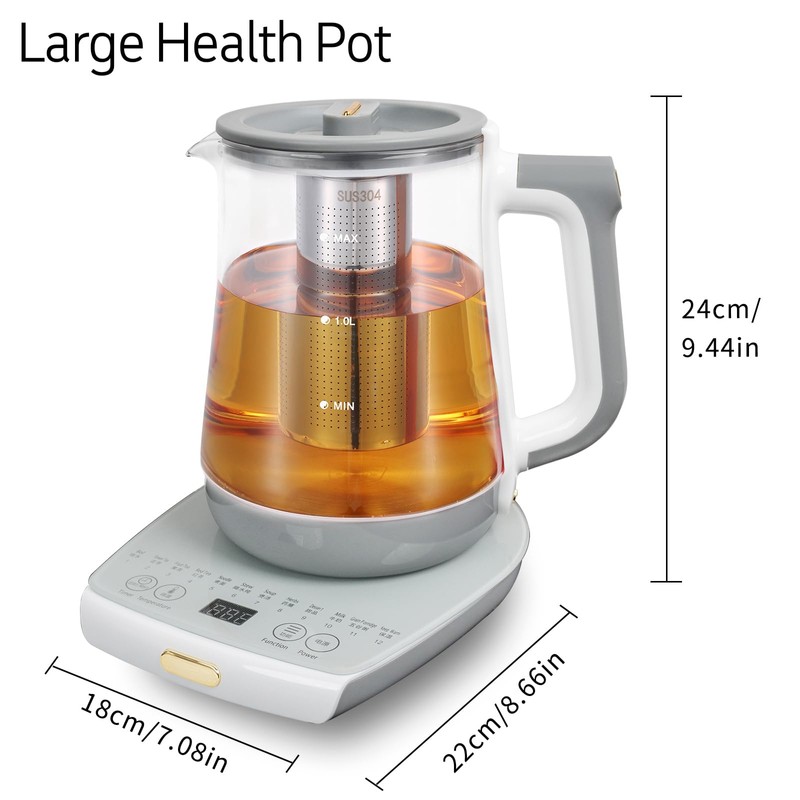 cglightwsparkle Electric Smart Hot Tea Maker Kettle Pot with Tea Infuser, Health Pot Temperature Control and Tea Keep Warm, 12 Functional Procedures, large 1.8 Liters of Capacity