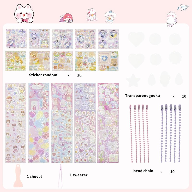 - Package Include:The Guka DIY set comes with 84 pieces including 20 long stickers, 20 square stickers, 20 coloured chains, 20 transparent gukas, a small shovel and a tweezers,a case and cover.