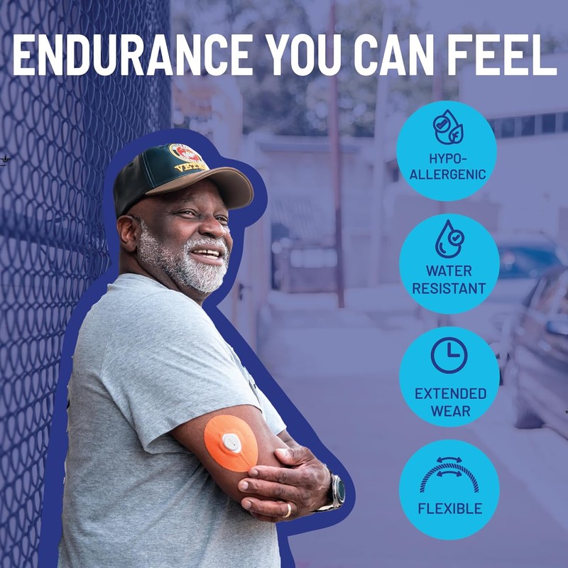- NO SKIN IRRITATION. The sensor patch material is latex-free, water resistant, and hypo-allergenic for all ages. With proper application and removal, never worry about itch or discomfort. Holds fast during exercise, swimming, showering, and everyday activities