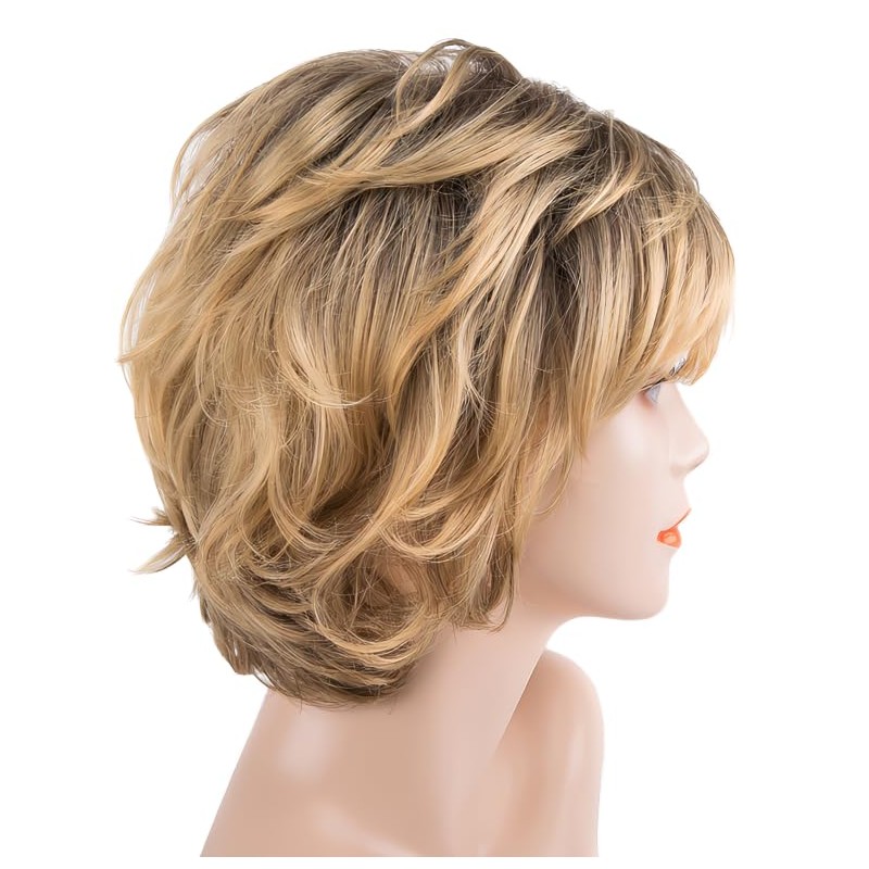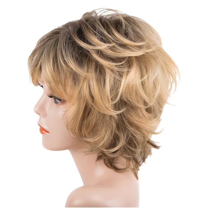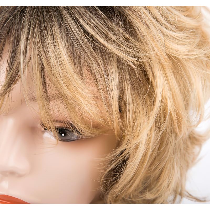 CGVG Ombre Blonde Wig Women's Short Curly Wavy Wig Women Short Fluffy Layer Wig Natural Synthetic Short Hair Wig Daily Use Party Carnival