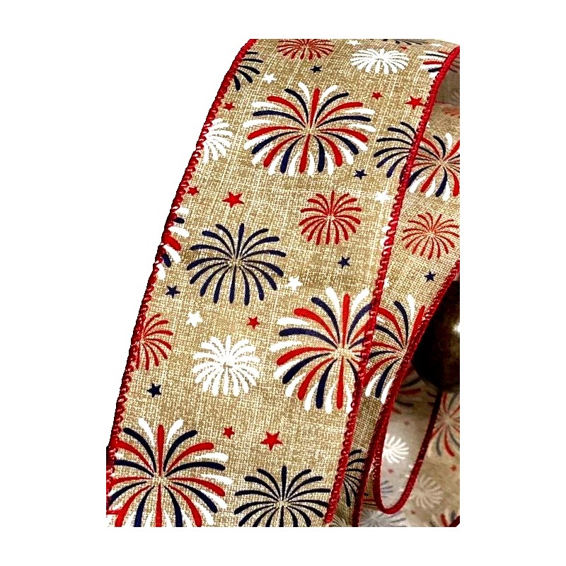 CH Patriotic 2.5" by 5 yd Red White Blue Fireworks Wired Ribbon Memorial Day