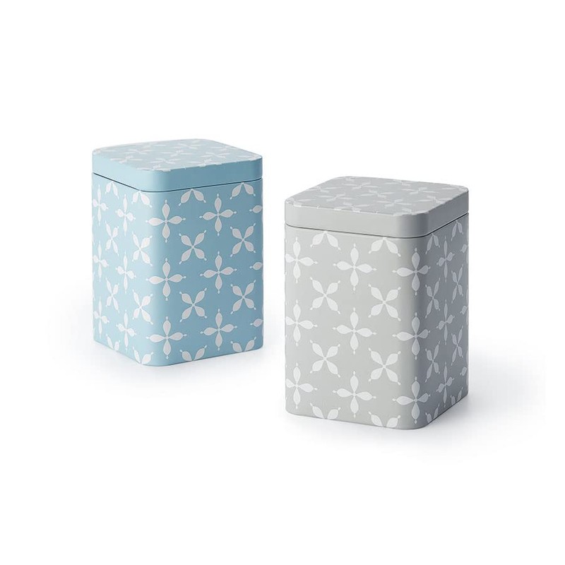 Cha Cult teemando® Lewis Tin 100 g Square with Pull-On Lid Matt 2 Assorted Designs 10 x 7.3 x 7.3 cm