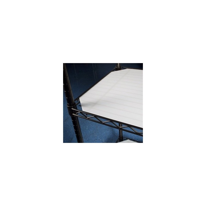 Translucent shelf liners allow you to store small and unstable items on wire shelving by providing a flat surface. Our quality liners are made by Chadko, LLC., a small, woman-owned business in Western Michigan. The .635 mm thick polypropelene (a type of plastic) is semi-translucent, and appears slightly white. It is water resistant and can easily be wiped clean. Not suitable for use as a work surface. Sold in a 4 pack. Note: This item is shipped rolled in a tube for eco-friendly shipping. It fully flattens after a day. Actual Dimensions: 7.125" x 35.0625" x 0.025"