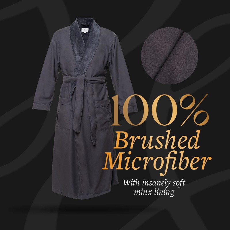 CHADSWORTH & HAIG Microfiber Plush Bath Robe with Minx Lining. Luxury Spa & Hotel Robe for Women & Men CHARCOAL L