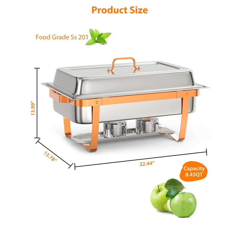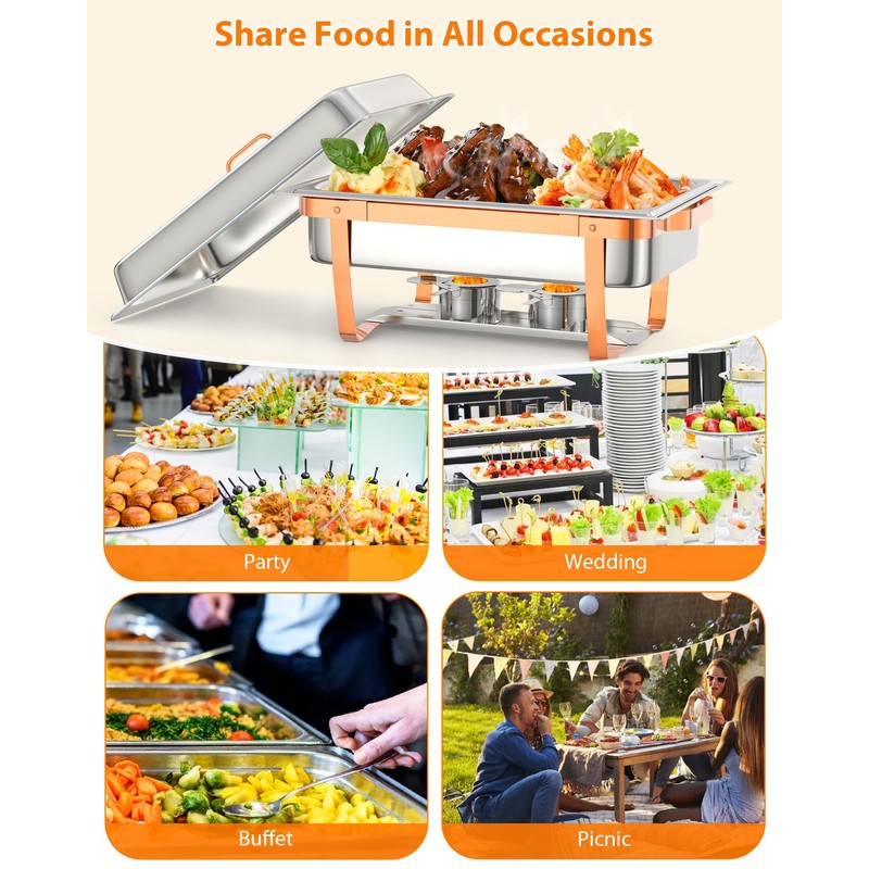 - 【Wide Application】- The large 8-quart capacity is perfect for a variety of occasions, whether it's a small gathering, a family dinner or a large event. Also the chafing dishes for buffet set is perfect for restaurants, buffets, catering, school and corporate events, parties, hotels and weddings to present food in a professional manner.