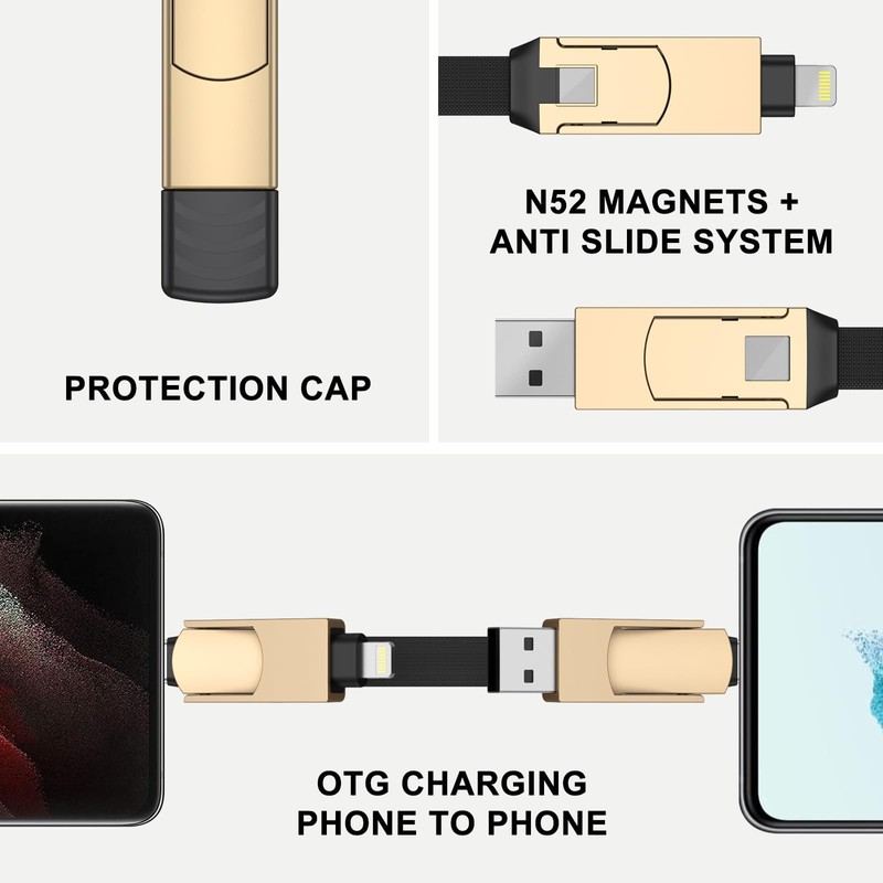 CHAFON 6in1ALL IN CHARGER Gold Multi Charging Cable Type-C/A