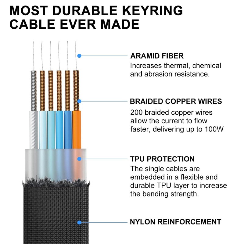 - The magnet on the head allows you to hang it on your keychain for portability. Zinc alloy case and black nylon high elastic cloth, durable, connectivity, compatibility, and performance are compact and high quality cable. High Quality