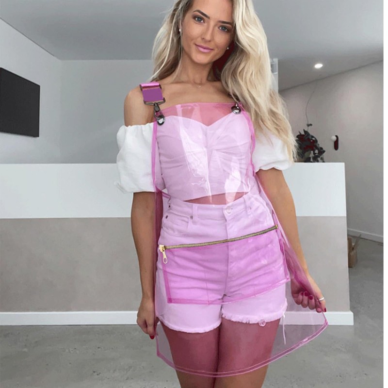 CHAILIQIANGG Transparent Waterproof TPU Apron with Pockets Women Men Work Apron Hairdressing Apron with Strap Oilproof and Easy to Clean Kitchen Apron, pink