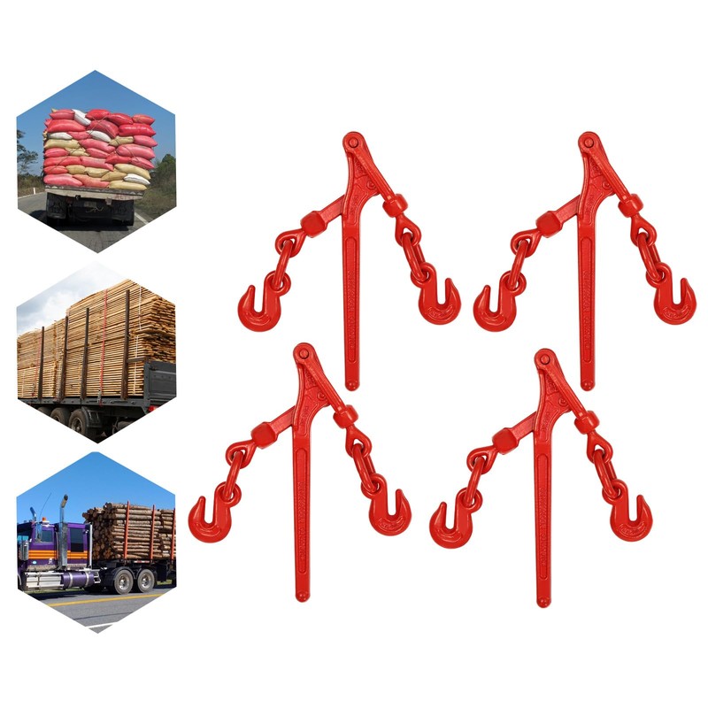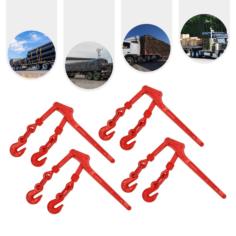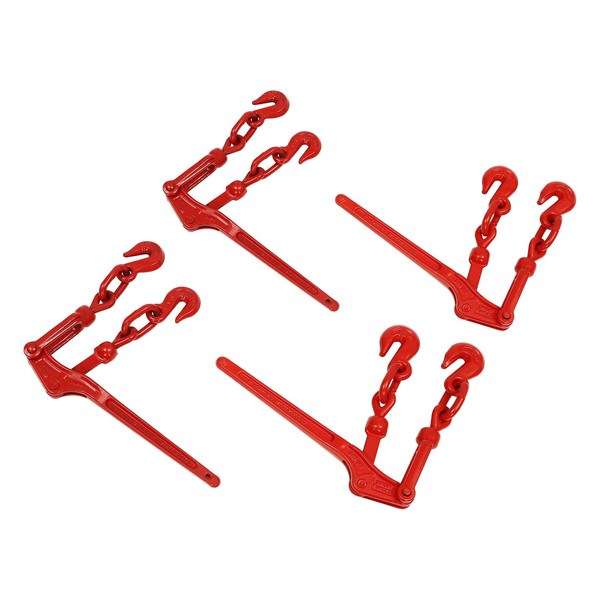 Chain Binders 5/16 to 3/8, 4 Pack Lever Load Binder (Red), Load-Bearing Capacity 9200 lbs, High-Strength G70 Hanging Hook for Industrial Transportation and Commercial Trucking
