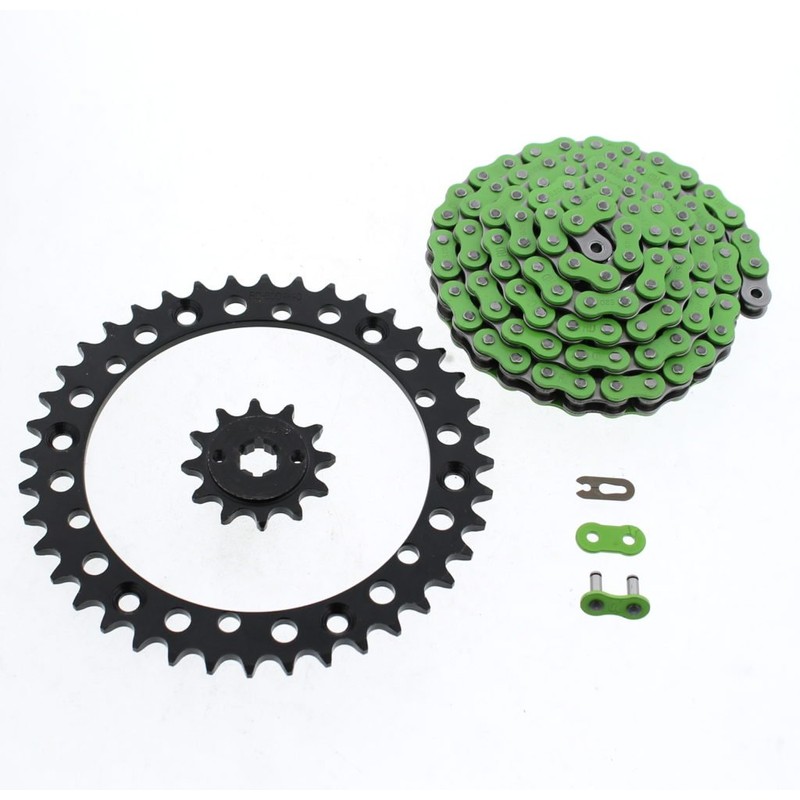 - 12 Tooth Front Sprocket, 40 Tooth Rear Sprocket and 520-92L Green Non-O-Ring Chain