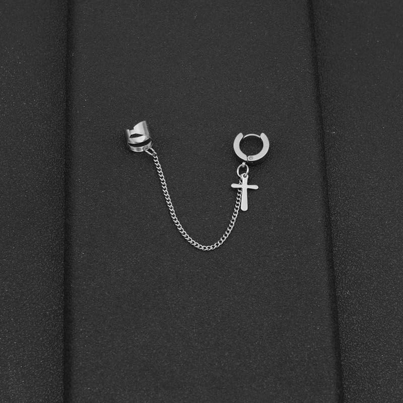 - A swinging cross and long chain make you eye catching: A simple yet eye-catching cross motif and a long chain make an impressive one-ear accessory. It features a stylish hoop with a cross charm swinging and a stylish design that accentuates the vertical line. It allows you to move around your ears while giving you a cool and relaxed impression. It goes well with a wide range of fashion styles, including Korean, streetwear, and mode styles. Recommended for both men and women