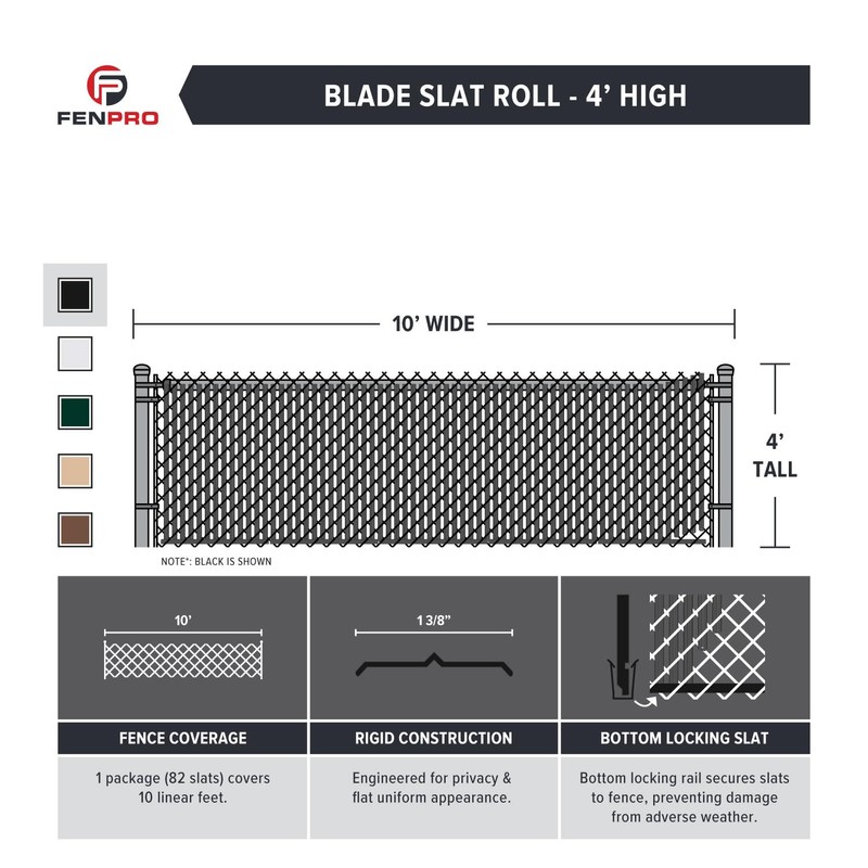 Chain-Link Fence Blade Slats with Bottom Lock (4-ft, Black)