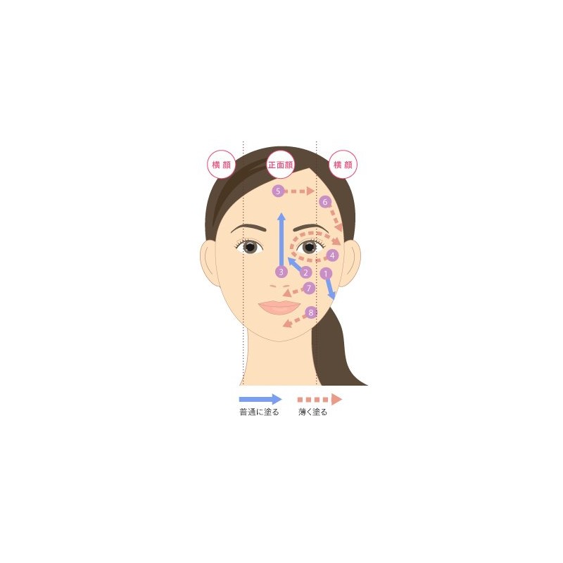 Take each color into the sponge, mix well in the palm of your hand, and then apply the particles until there is no residue on your hands, and then blend the entire skin according to the foundation direction (see image diagram above).