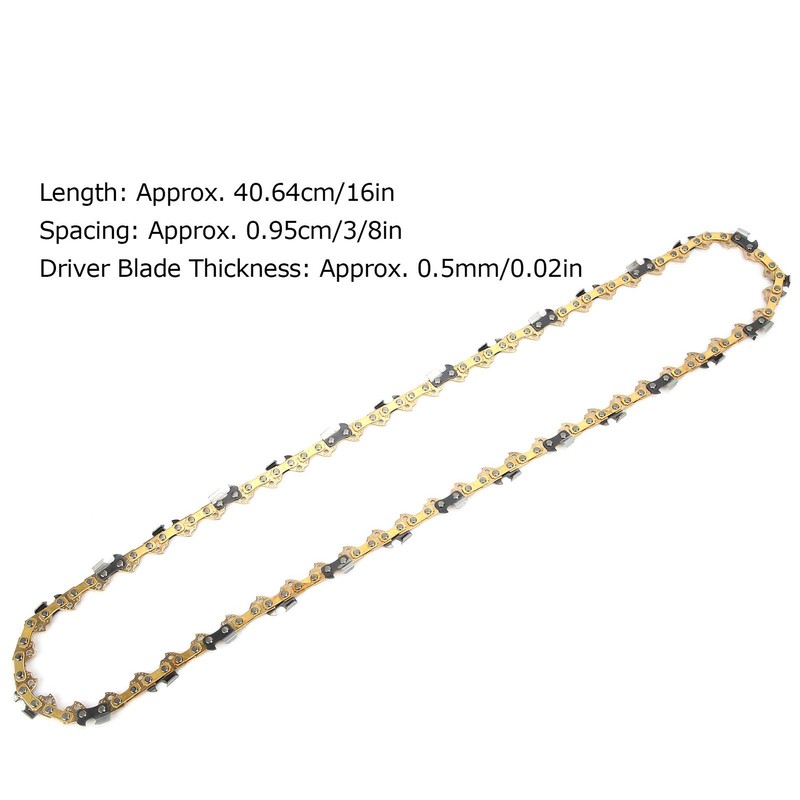 - Model: 59 Link Golden Chain. Length: Approx. 16in. Driver Blade Thickness: Approx. 0.5mm/0.02in