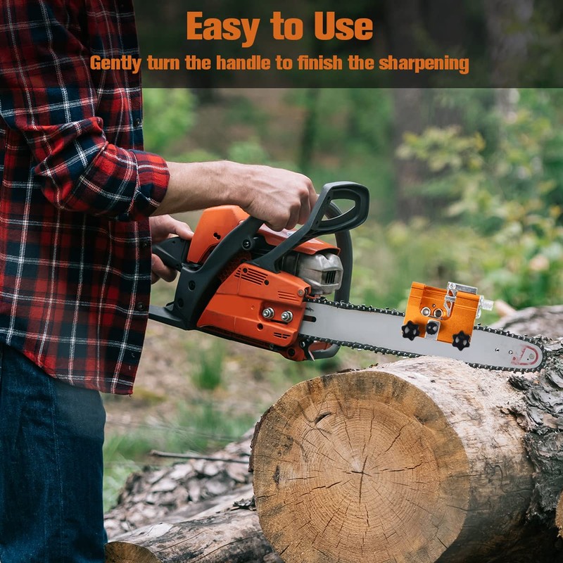 - 【Easy to use】 Find a dull saw tooth, turn the handle and start sharpening, precise sharpening will ensure that every tooth is repaired. The hand crank chain saw sharpener is fixed to the chain with adjustable rivets.