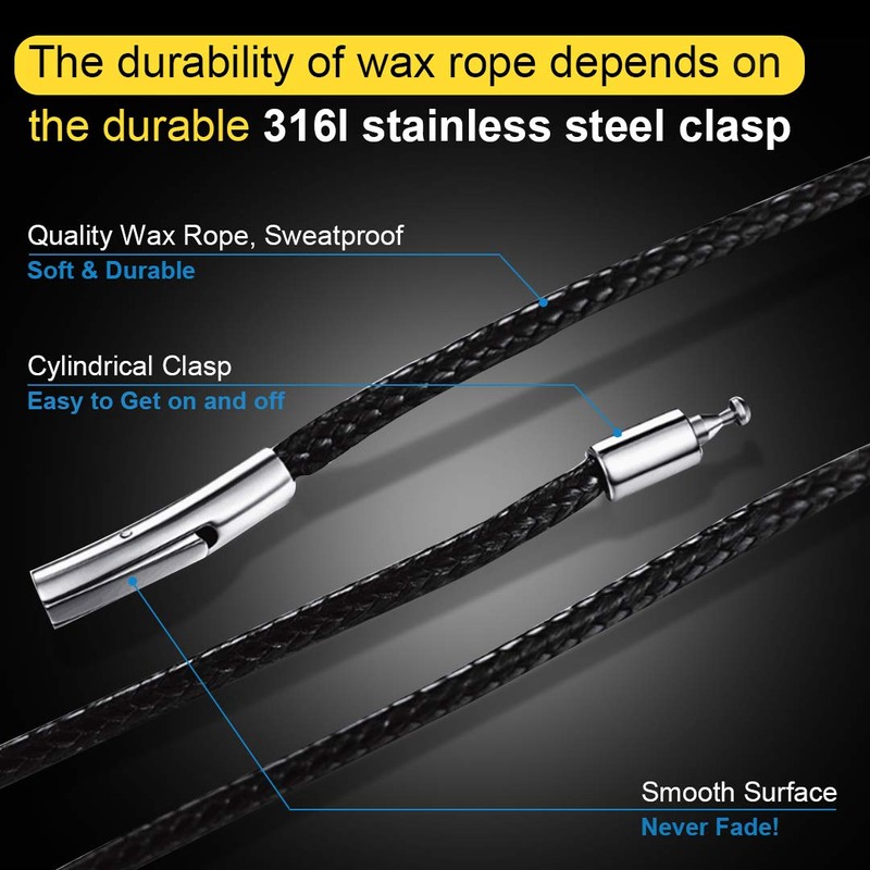 - ✎ Product Material ☛ High Quality Waterproof Wax Leather Rope; With 316L Stainless Steel Clasp; Soft And Durable, Comfortable To Wear.