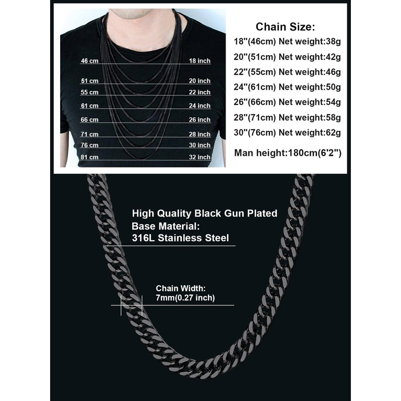 Design: ChainsHouse Unisex Cuban Chain Stainless Steel 5/7/10/13.5 mm Wide Men's Chain - Silver Yellow Black Gift Box Included - Choice of Length