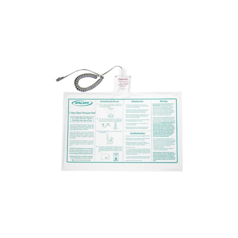 - Alarm connects to the chair pad, and is therefore in the room with the patient. Place the chair pad in the seat of chair, when weight is lifted from the pad, the alarm will sound.
