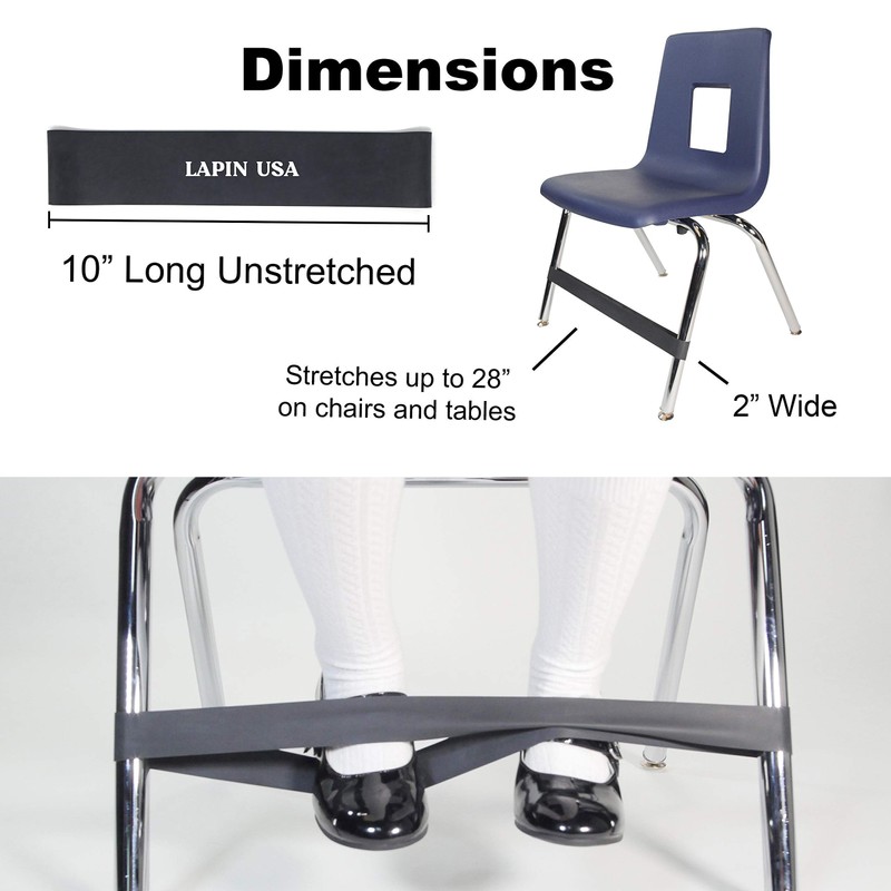 - EASY TO FIT MULTIPLE DESKS AND CHAIRS – When you buy the fidgety rubber chair, you are sure to install it on any chair with ease. Kids can even install it with very little supervision. The band is very elastic to fit any seat for your kid. Stretches comfortably up to 28” wide.