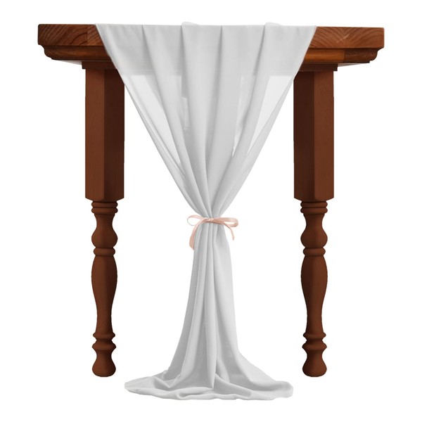 Chair & Chisel Chiffon Table Runner 29x120 in - White - Versatile Styling - Waterproof & Wind-Proof - Elegant Decor - Chiffon Table Runner with Satin Ribbon Ties - Long Chiffon Table Runner