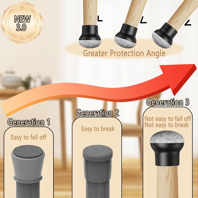 - [New Generation&High Quality] With a brand-new design and high-quality materials, our chair leg caps protectors address the common issues found in other products on the market, such as slipping, breakage, and lack of durability