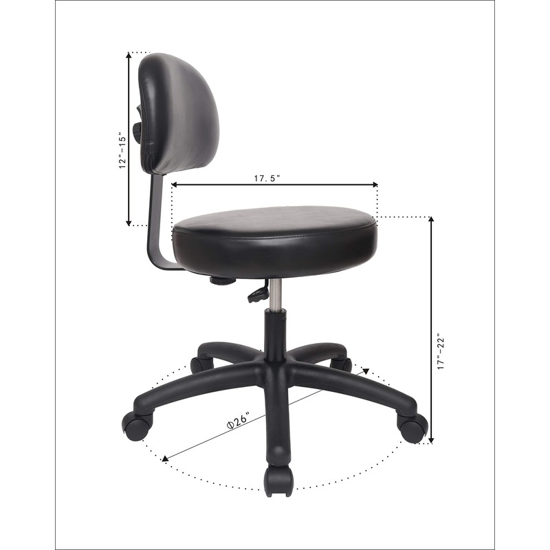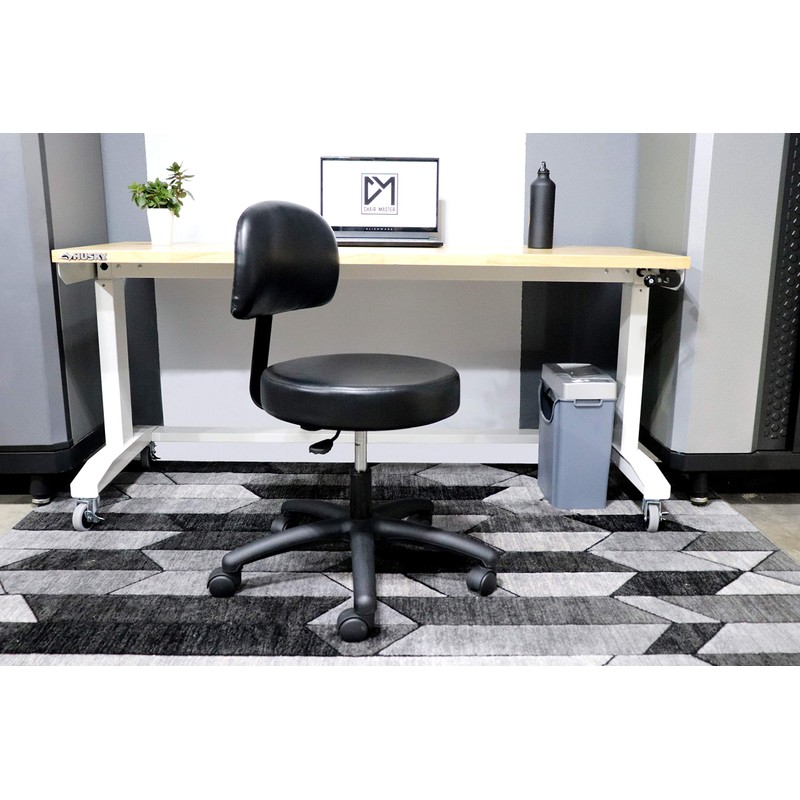 Chair Master Round Vinyl Chair/Stool-Black-for Garage, Counters, Shop, Kitchen, Computer Desks, Drafting Tables. Easy to Clean! (Soft Non-Marking Casters, Low Table 16"-21")