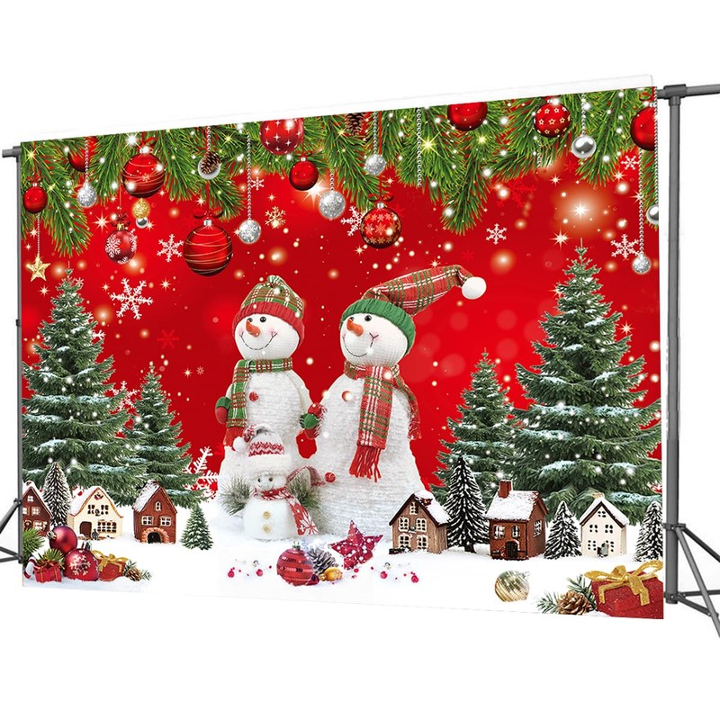 CHAIYA 7x5ft Christmas Red Backdrop Merry Christmas Backdrop Banner Red Christmas Snowman Large Banner Party Decorations Supplies Xmas Holiday Happy New Year Backdrop