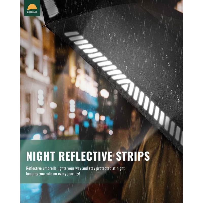We have specially designed safety reflective strips which is provide high visibility in low light and rainy days to alert cars and vehicles, allowing drivers to see you from a distance. This umbrella is also suiitable for backpackers who are traveling. Otherwise, it can be placed in the car as a spare, so you don’t have to worry about getting wet when getting in and out of the car when it rains.