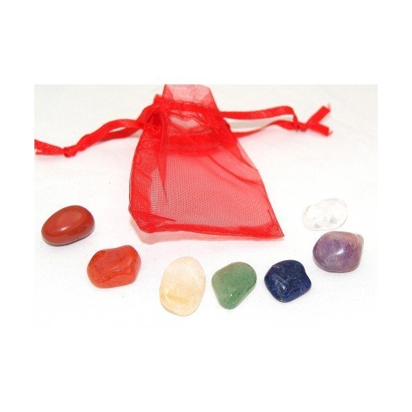 - chakra, gift, 10mm, stones, organza, pouch, gemstones, white, howlite, shown, snowy, quartz, amethyst, purple, fluorite, sodalite, amazonite, green, citrine, carnelian, jasper, fabric, great,