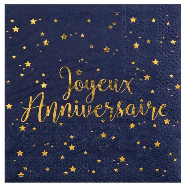 Chal - 20 Napkins Navy and Gold Happy Birthday