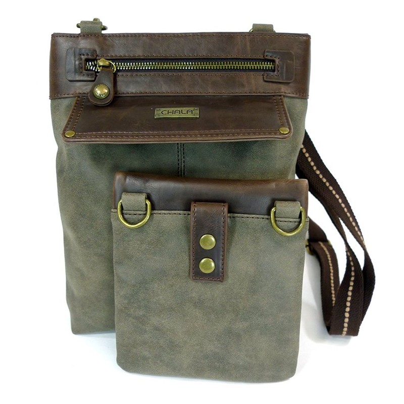 Chala GEMINI Crossbody Faux Leather Gift Messenger Bag, Slim Cat, Stone Gray,One Size